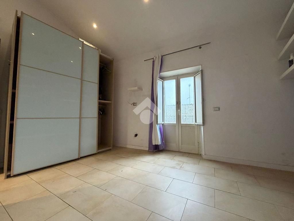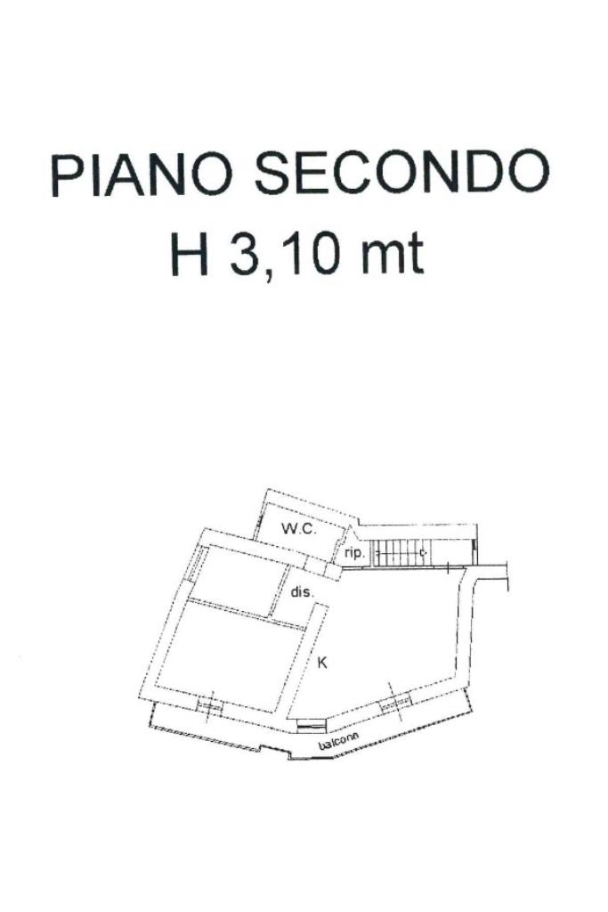 Attraverso una scalinata si raggiunge l'abitazione che è così composta: soggiorno con angolo cottura, balcone, due camere da letto, una matrimoniale e una singola, bagno con piccola finestra e ripostiglio.