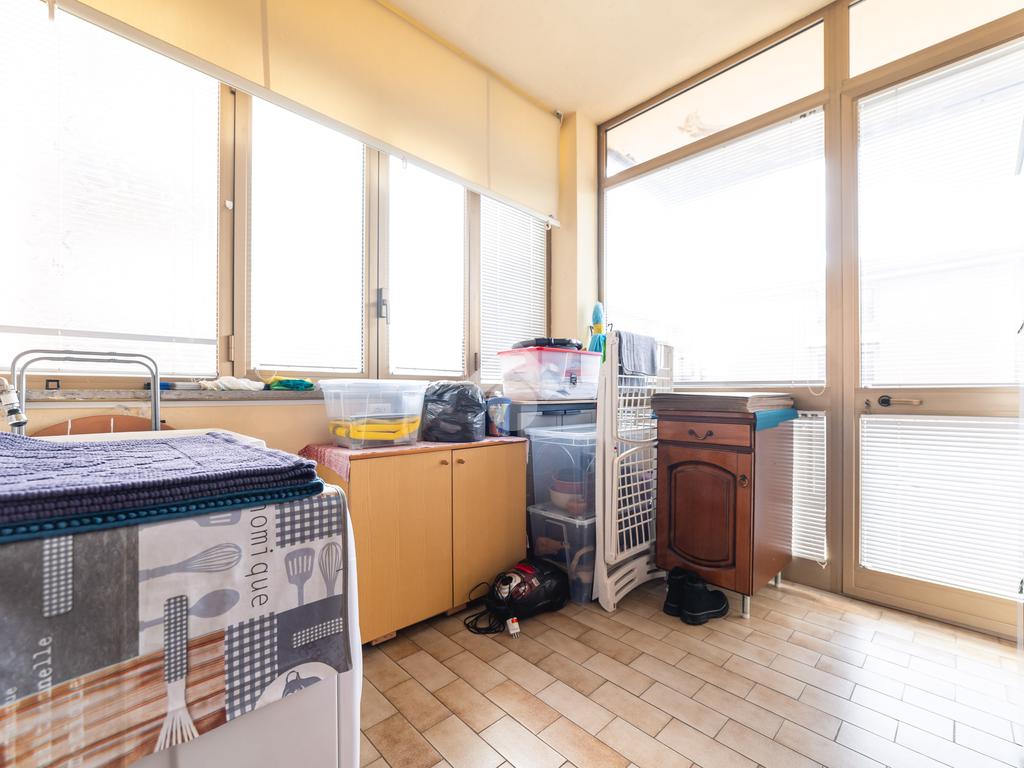 Le camere da letto sono tre, due matrimoniali di generosa metratura e una singola con terrazzo. Questa area esterna attualmente è per metà verandata per consentirne l'utilizzo a lavanderia.